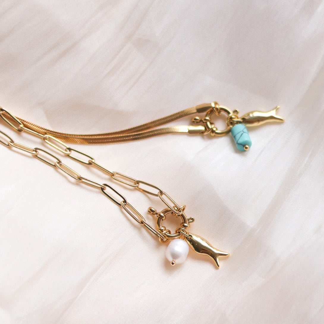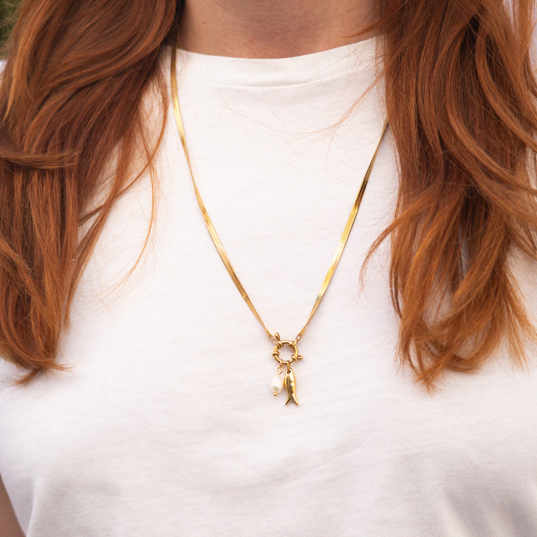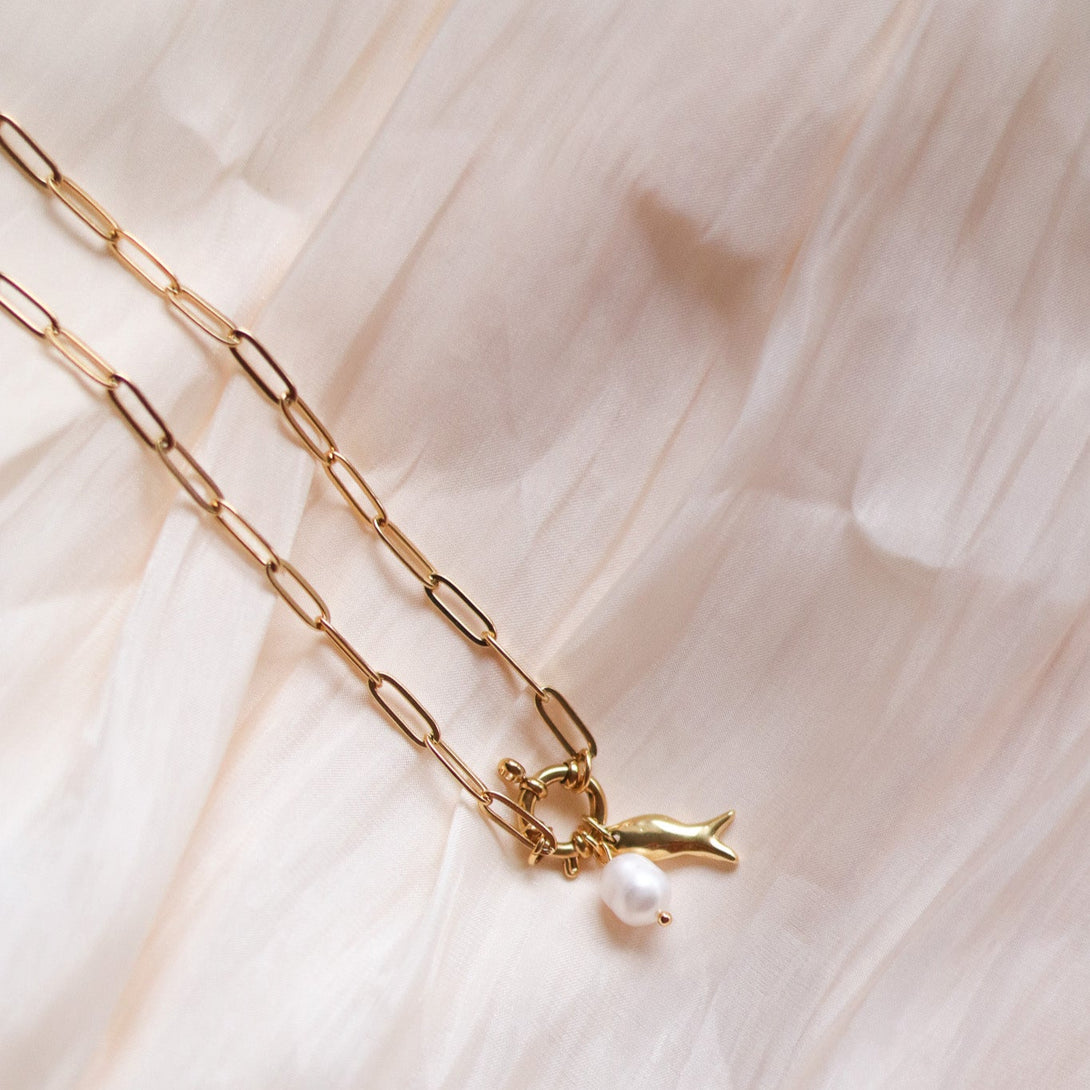 Materijal: nehrđajući čelik, 18k pozlata, prirodni biser