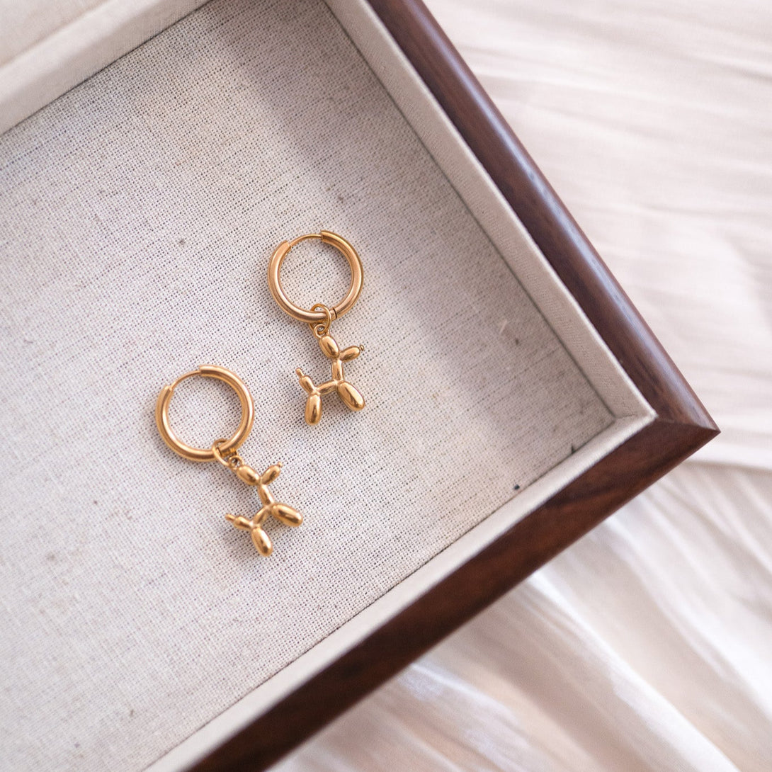 Mini skulpture za tvoje uši – ove naušnice s balon-psić charmom donose dašak razigranosti u svaki outfit. Inspirirane su umjetnošću i djetinjom radošću, ali izvedene u elegantnoj, zlatnoj varijanti.
