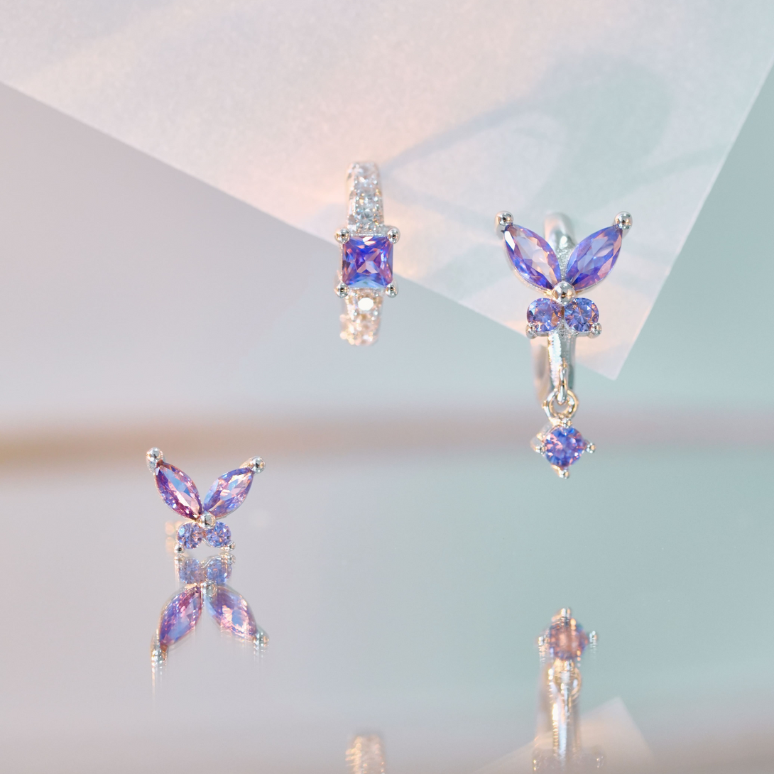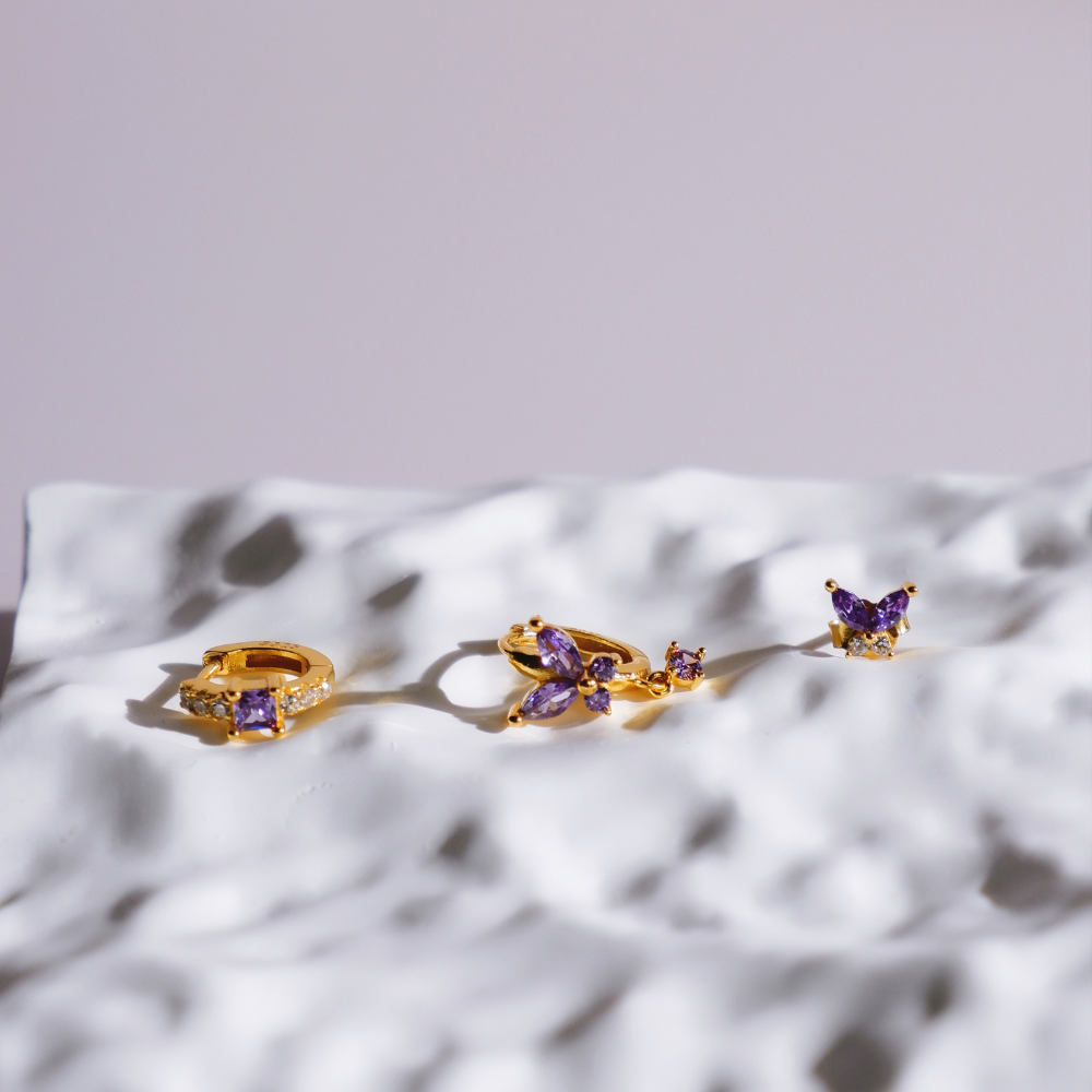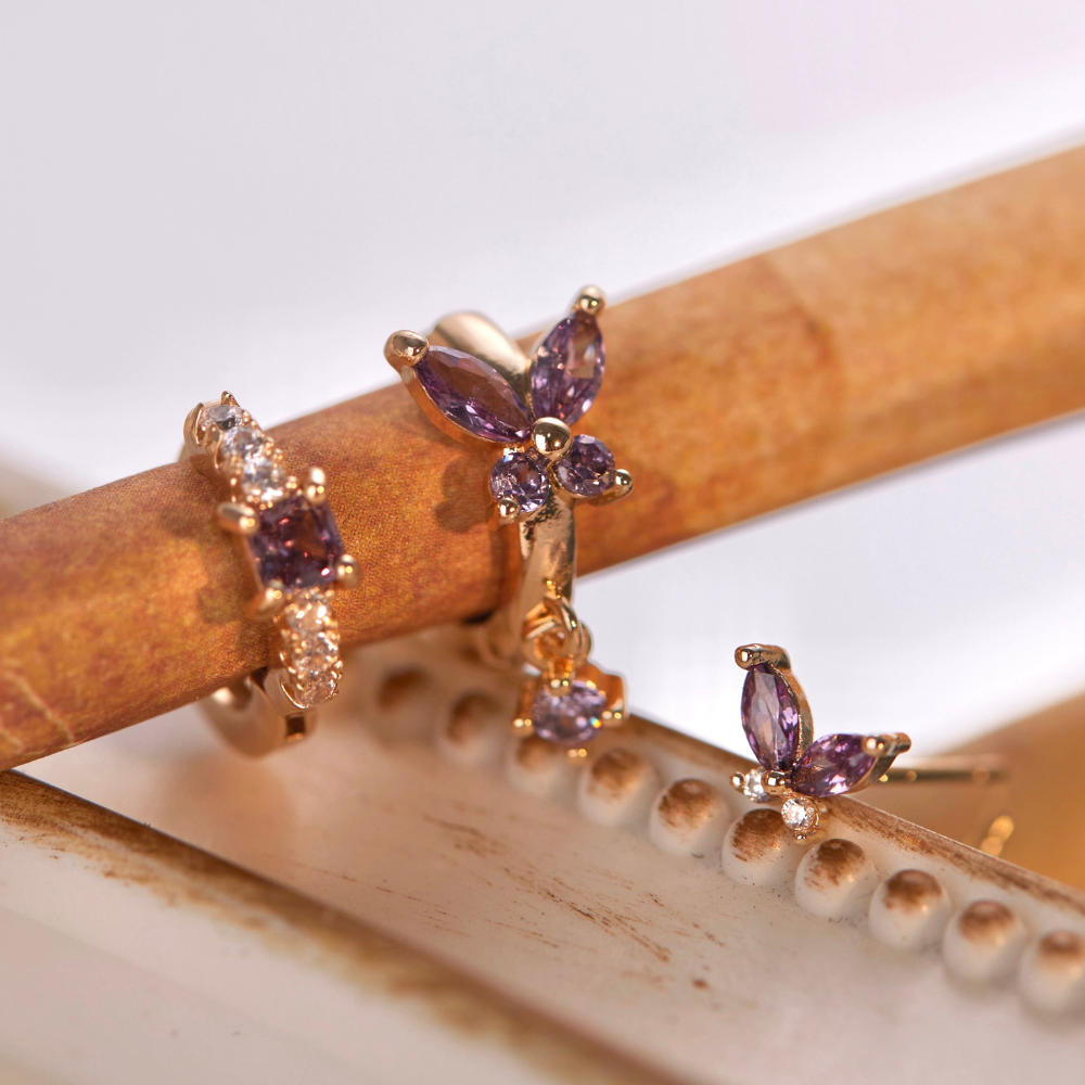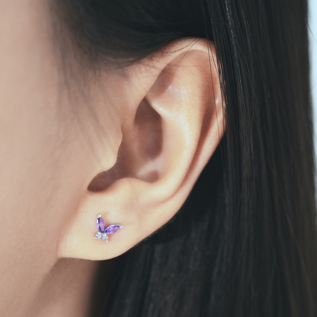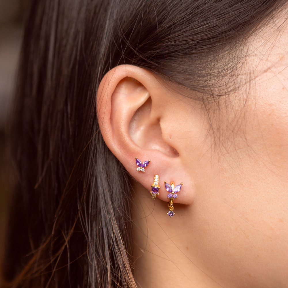 Ove naušnice s leptirićima izrađenima od ljubičastih cirkona donose sjaj koji se lako primijeti. Savršene za slaganje ako imaš više piercinga, ali i dovoljno posebne da ih nosiš i samostalno.
