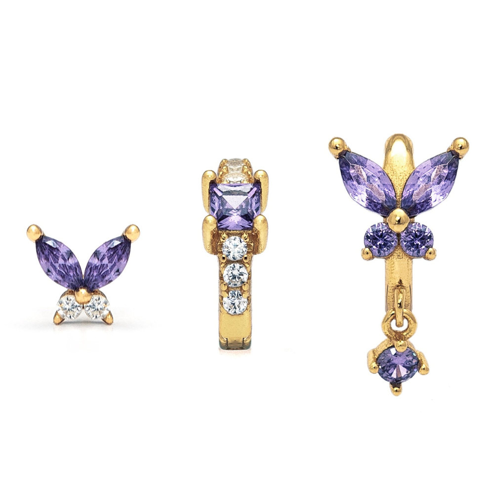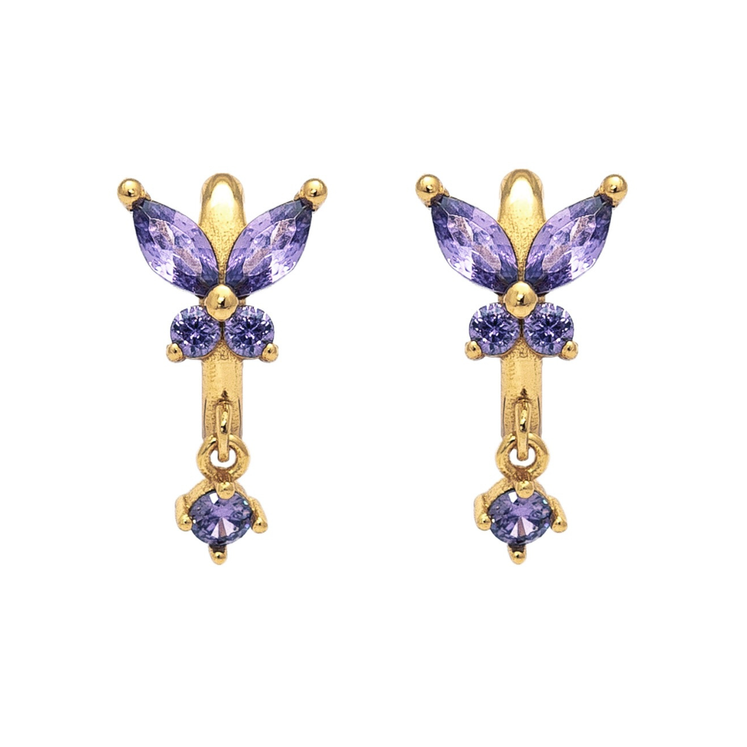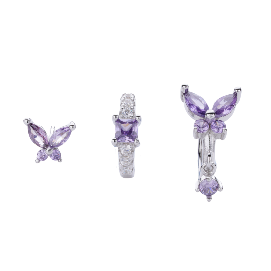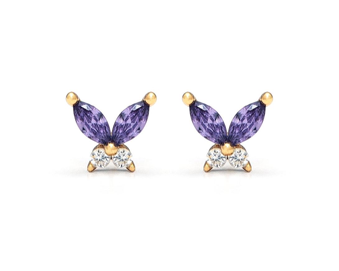 Ove naušnice s leptirićima izrađenima od ljubičastih cirkona donose sjaj koji se lako primijeti. Savršene za slaganje ako imaš više piercinga, ali i dovoljno posebne da ih nosiš i samostalno.
