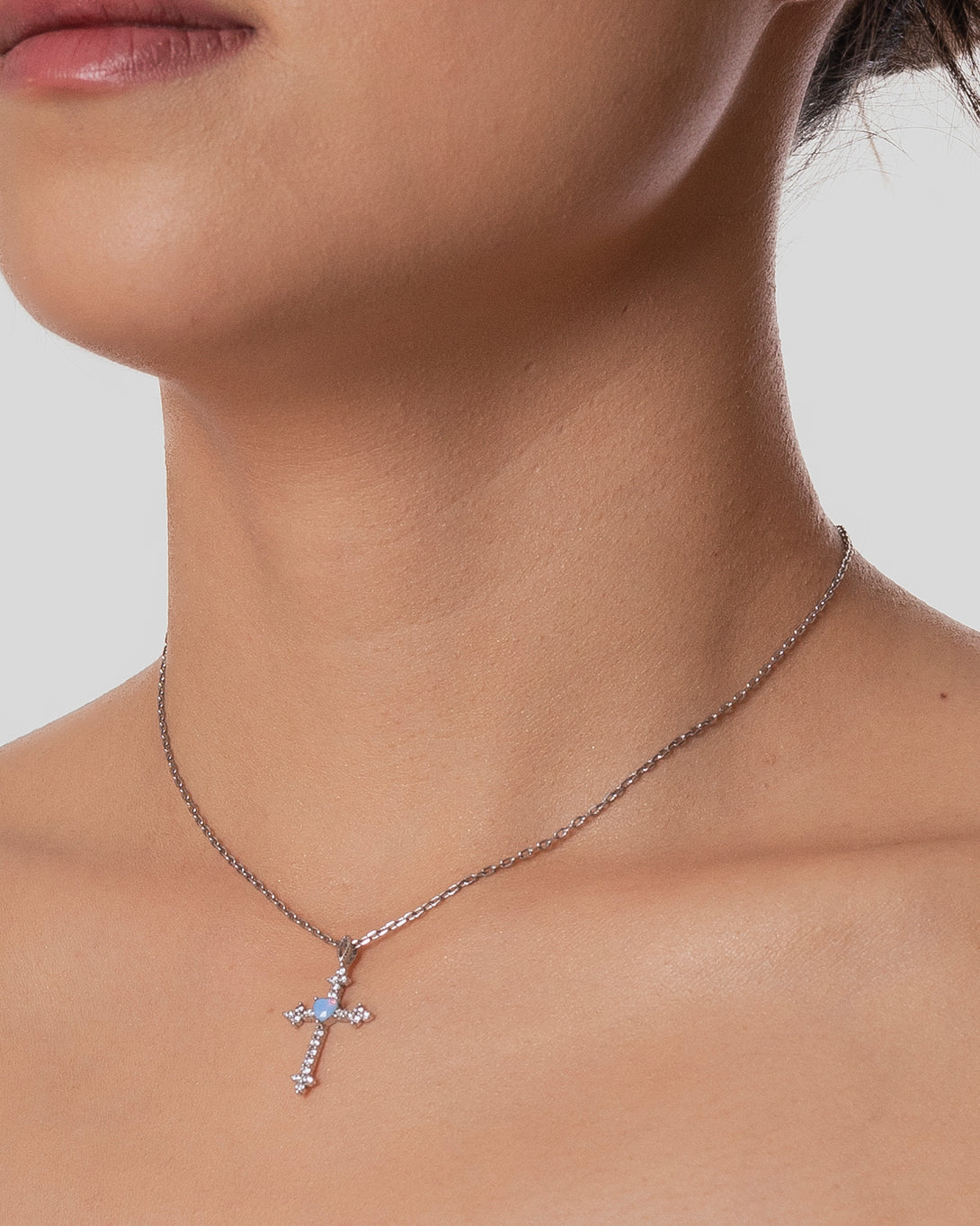 Faith ogrlica spaja klasičan simbol vjere s nježnim detaljima u boji.