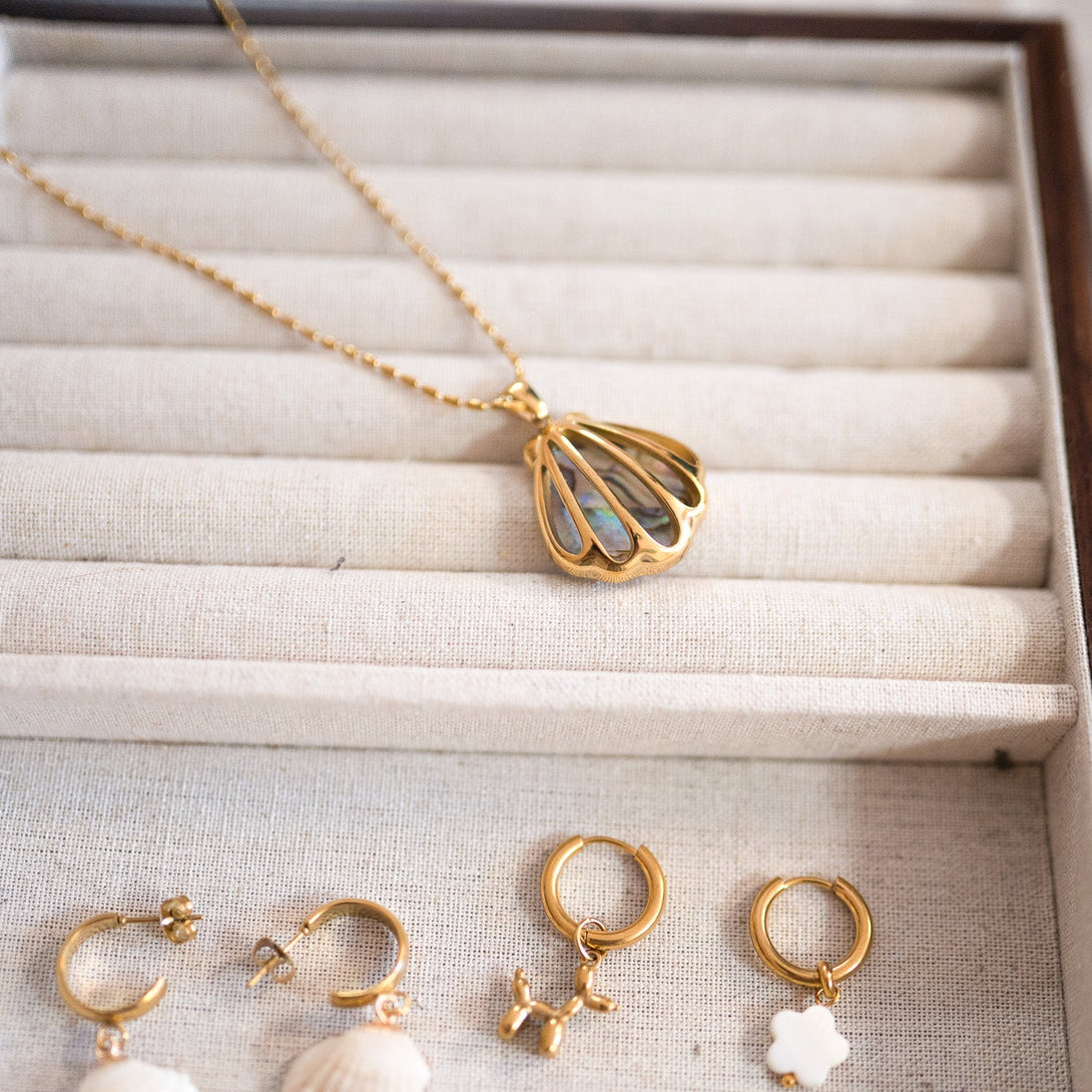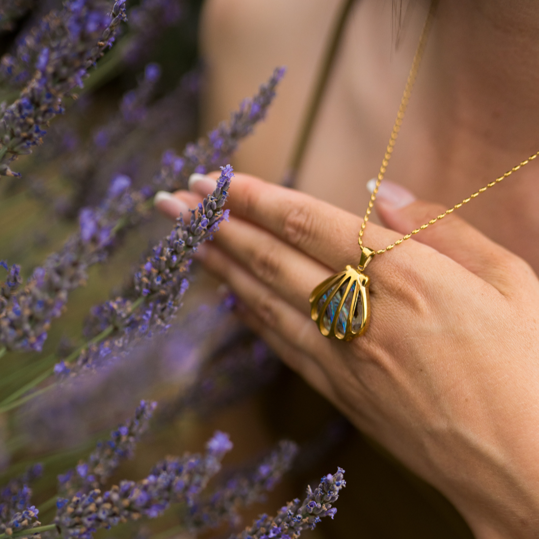 Inspirirana mitološkim morskim vilama i spokojem dubokog plavetnila, Nerina donosi dašak bajke u tvoj svakodnevni stil. Njezin privjesak u obliku školjke skriva diskretni sjaj plavkastog odsjaja, evocirajući svjetlost mora zarobljenu u zlatnim linijama.