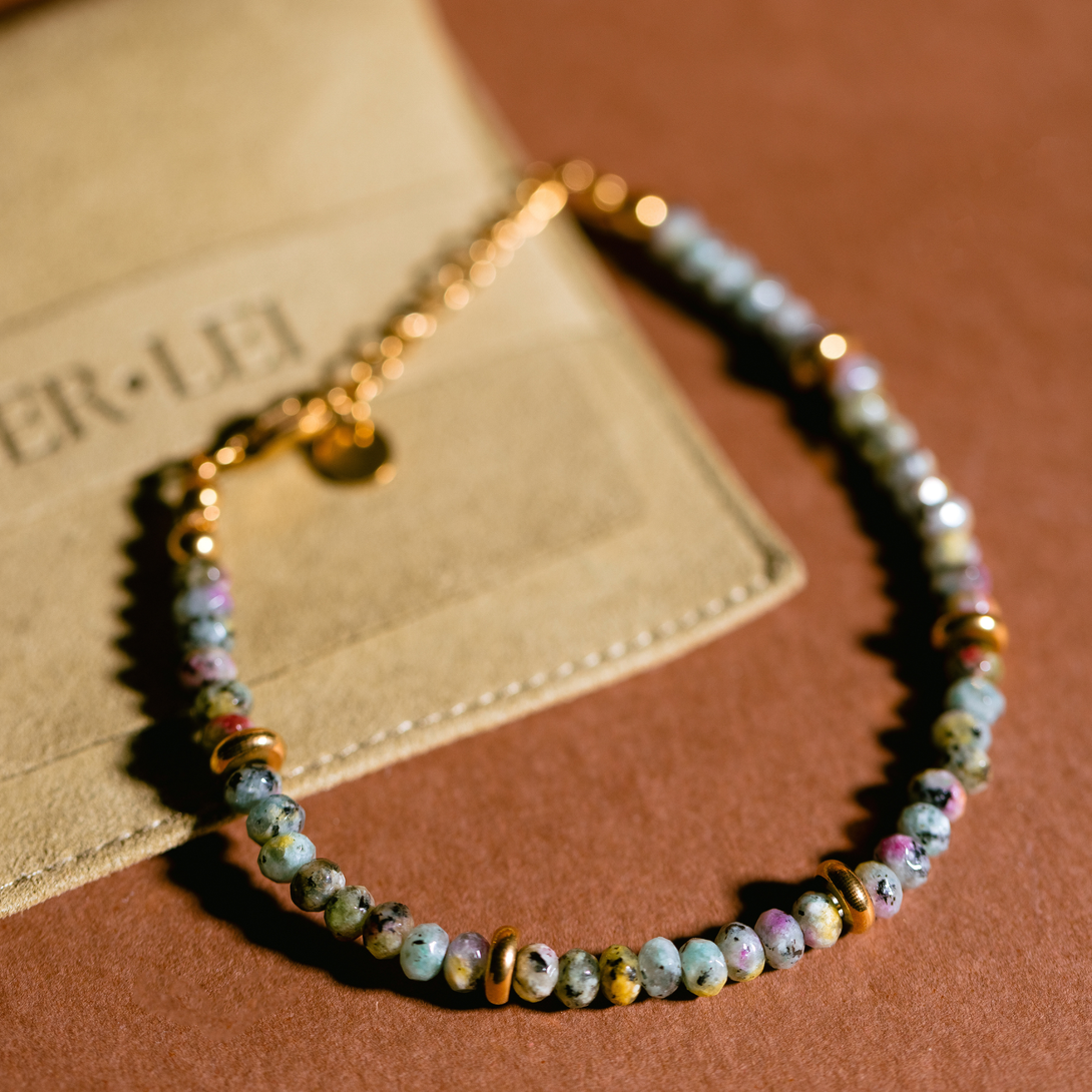 Nježna, a izražajna, Sage narukvica donosi miran balans između prirodnih tonova i zlatne topline.
